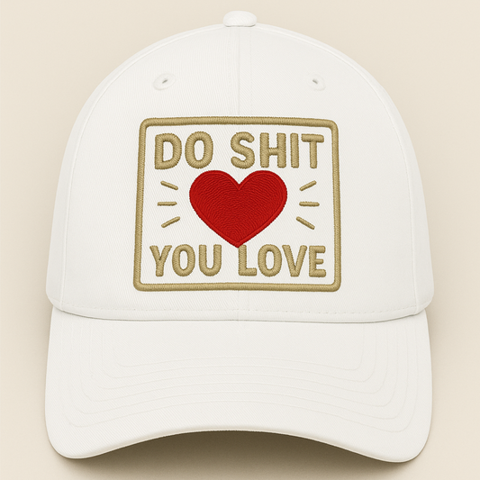 Do Shit You Love Embroidered Hat – Motivational Dad Cap with Red Heart, Bold Statement Hat, Passion & Hustle Gift