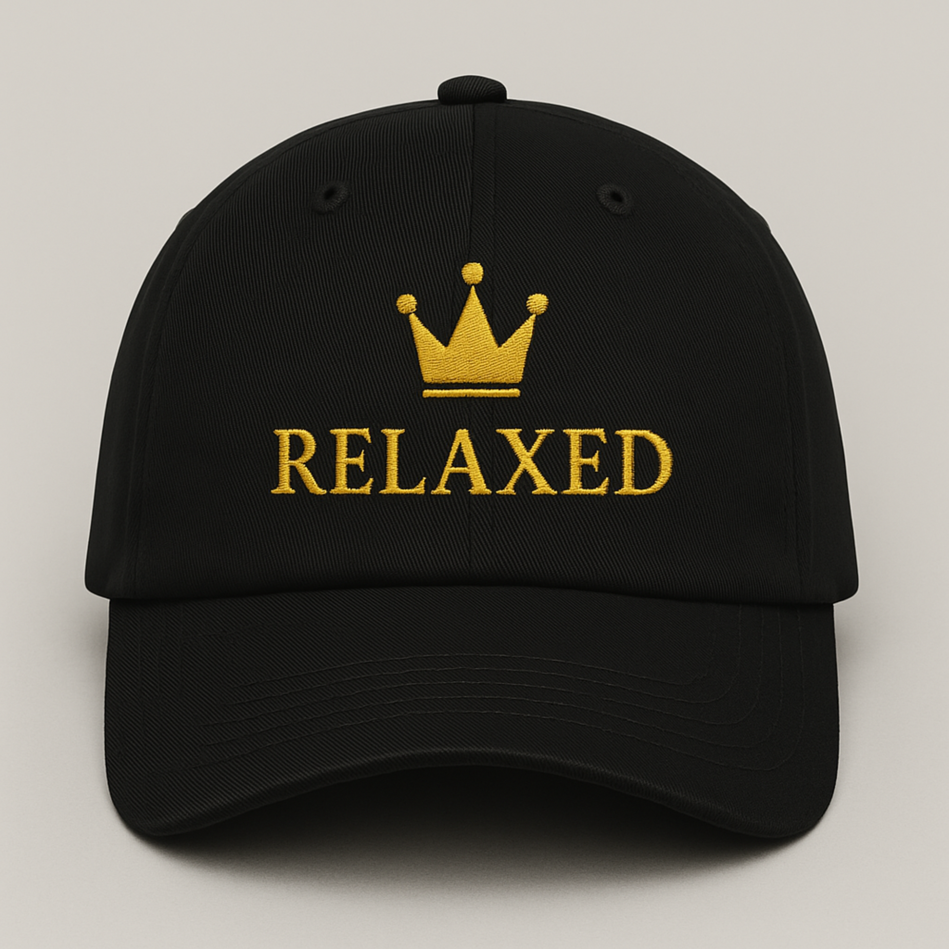 This “Relaxed” embroidered dad hat brings luxury energy with a laid-back twist. Designed with a clean gold crown icon and premium stitchwork, it’s the ultimate flex for those who’ve earned their peace and proudly rock it.